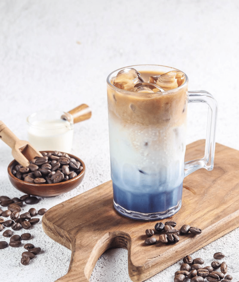 De samenstelling van de Blue Mind Latte maakt het een veelzijdige drank.